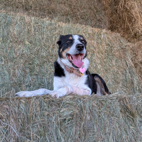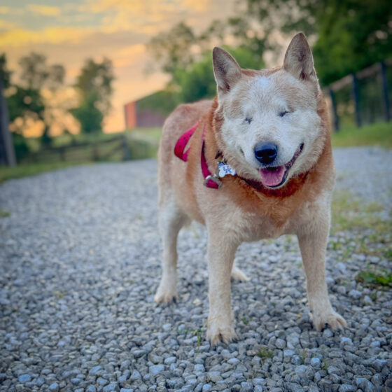 In 2021, Goose’s family made the difficult decision to remove both his eyes after he went blind from glaucoma. His family hoped for the best of course, but they were amazed at how his resilience carried him through his recovery. Though he can’t round up the cattle or fetch Lindie’s tools anymore, Goose is still a critical part of farm life, using instinct and memory to guide him. Goose enjoys slow strolls to the red barn and is the farm’s most dependable greeter and morale booster. On those tough days on the farm, which sometimes stretch into tough seasons, Goose is a reminder of the power of resilience, adaptability and gratitude. Watching him overcome blindness with grace and grit gives Lindie strength to overcome her own challenges.