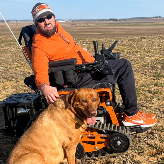 Travis and Ruby Hope’s life on the farm was transformed in February when a group of farmers from across the U.S. gifted Travis a track wheelchair, allowing the two to venture across the farm freely. Now, Travis can reconnect with the memories of work he loved – driving a tractor during harvest, stacking straw and pulling weeds from the soybeans – and introduce Ruby Hope to the sights, sounds and smells of farm life.