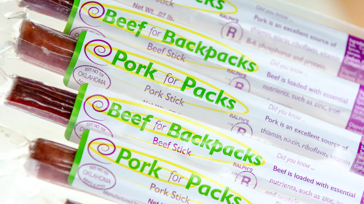 The custom-labeled protein sticks are delivered to the Regional Food Bank of Oklahoma and the Food Bank of Eastern Oklahoma for inclusion in the backpack program. The backpacks are then distributed to schools across Oklahoma for students facing food insecurity to take home for the weekend.
