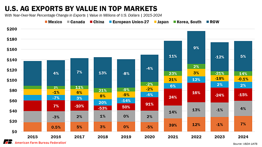 Agriculture’s role as a cornerstone of the U.S. economy depends on strong trade flows. Policy decisions in the months ahead on tariffs, trade agreements and export promotion will play a major role in shaping the outlook for the farm economy in 2026 and beyond. For U.S. farmers, the stakes are high and the need for dependable trade partners has never been more dire.