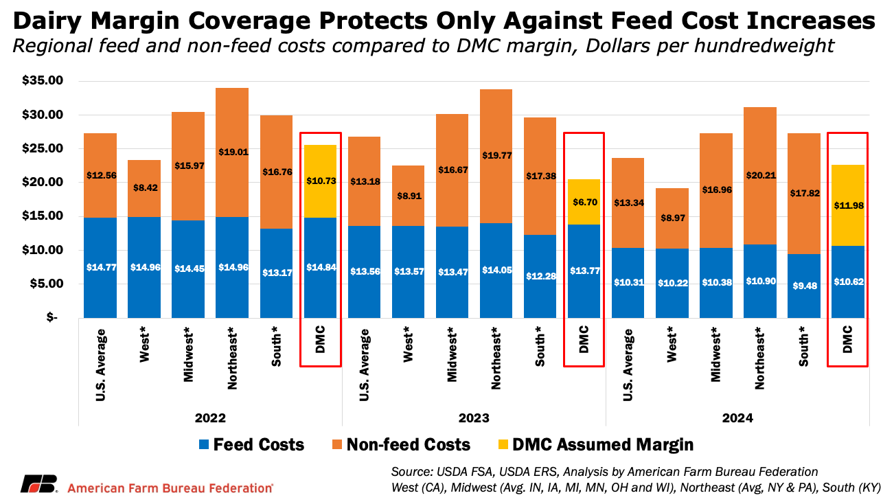 What OBBBA did not address was the margin formula itself. DMC remains a national income-over-feed-cost program that does not incorporate non-feed operating costs or adjust for regional variation in feed or milk prices. Because the program had delivered significant support during recent feed-driven downturns, structural changes to the margin calculation were not a central focus when OBBBA was being negotiated.
