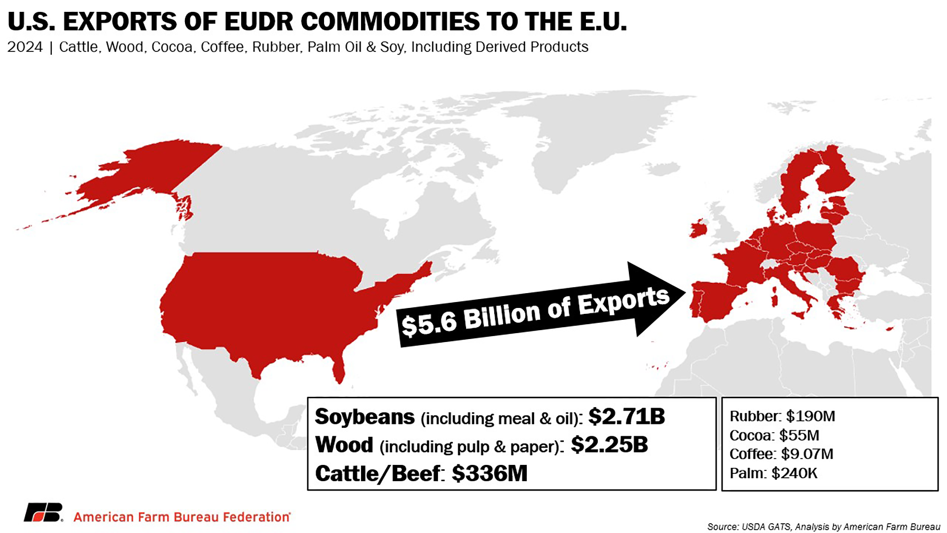 However, American farmers are being swept into significant traceability and compliance hurdles for one of their major trading partners. EU officials have once again delayed enforcement of the rule until the end of 2026 due to concerns over the rule’s complexity, but anticipation of EUDR has caused significant trade barriers for American farmers, ranchers and foresters.