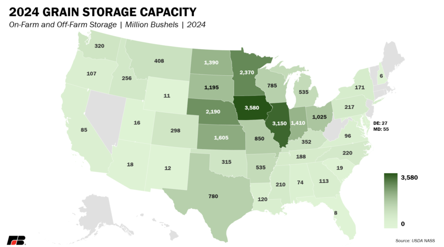 Major Corn Belt states such as Iowa, Illinois, Minnesota and Nebraska hold nearly half of all U.S. on-farm capacity. However, most of those states have added very little new space in recent years even as production has grown. Some elevators are already near capacity before harvest begins, particularly in areas where low river levels continue to restrict barge traffic.
