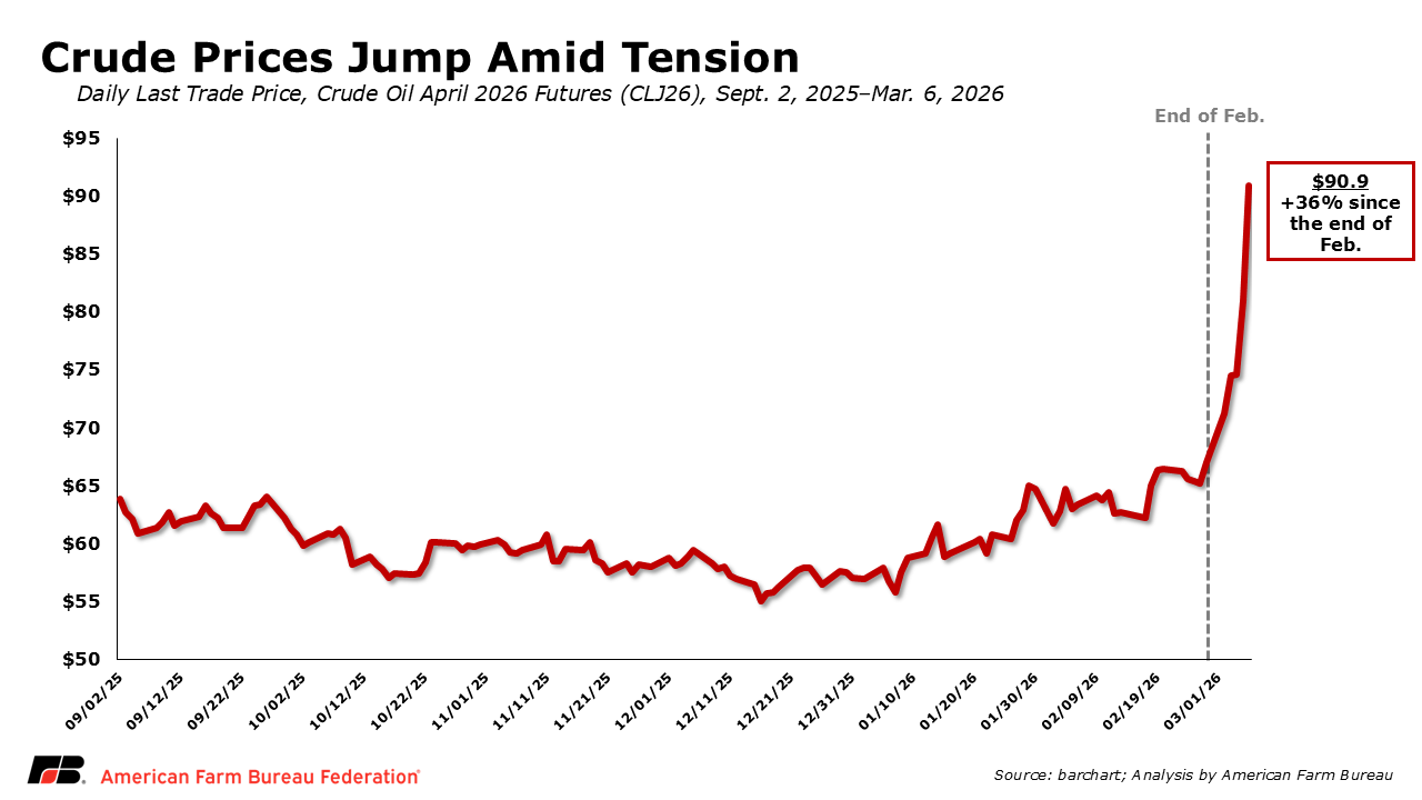 Markets remain uncertain, and the duration of disruptions in the Middle East will ultimately determine how much fertilizer and fuel prices move in the months ahead. While the United States is the world’s largest producer of oil and natural gas, fuel and fertilizer markets remain globally interconnected.