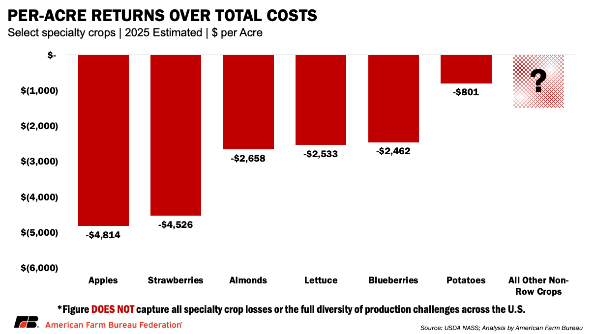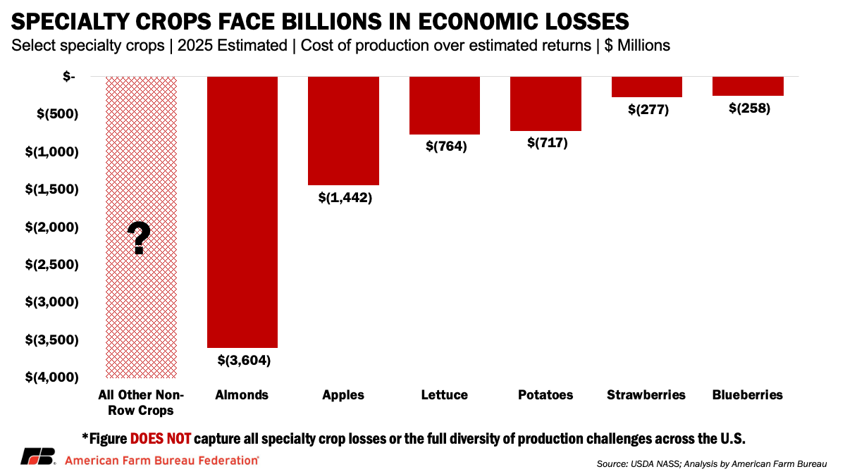 This lack of consistent data should not be mistaken for a lack of hardship. One part of U.S. agriculture benefits from publicly supported, frequently updated market information; the other does not. That gap makes it significantly harder to quickly and credibly quantify the economic losses specialty crop farmers are absorbing.